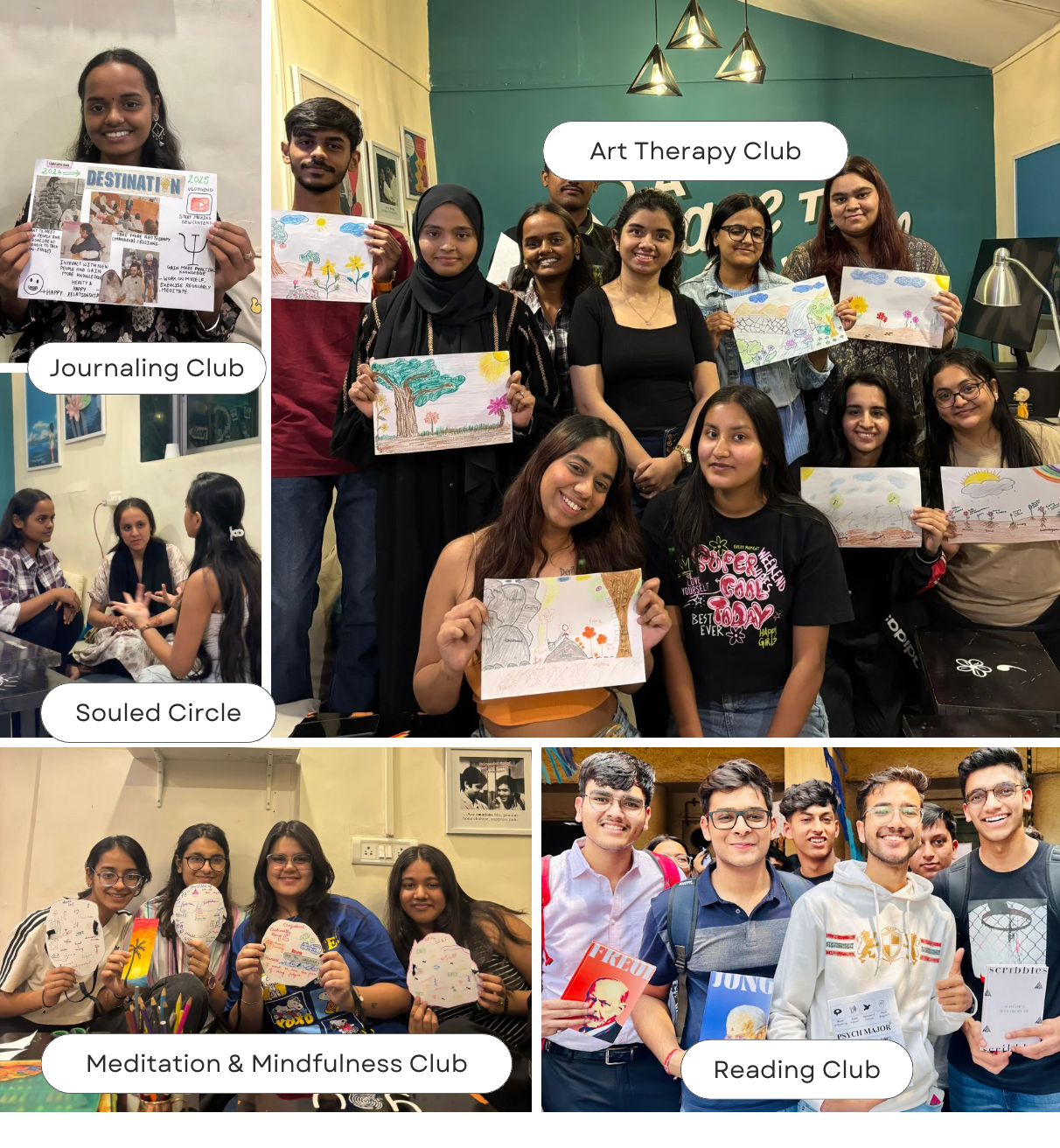 Our mental health clubs are designed to bring people together around shared interests in psychology, well-being, art, and mindfulness. These clubs foster community spirit, encourage self-expression, and offer structured, enriching experiences that members can rely on for personal growth and social connection.