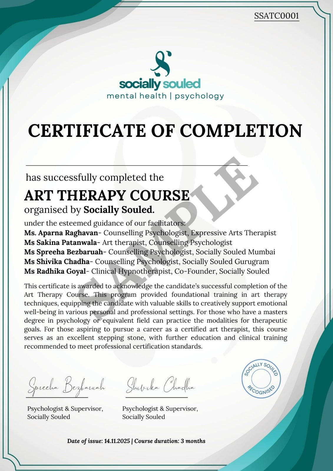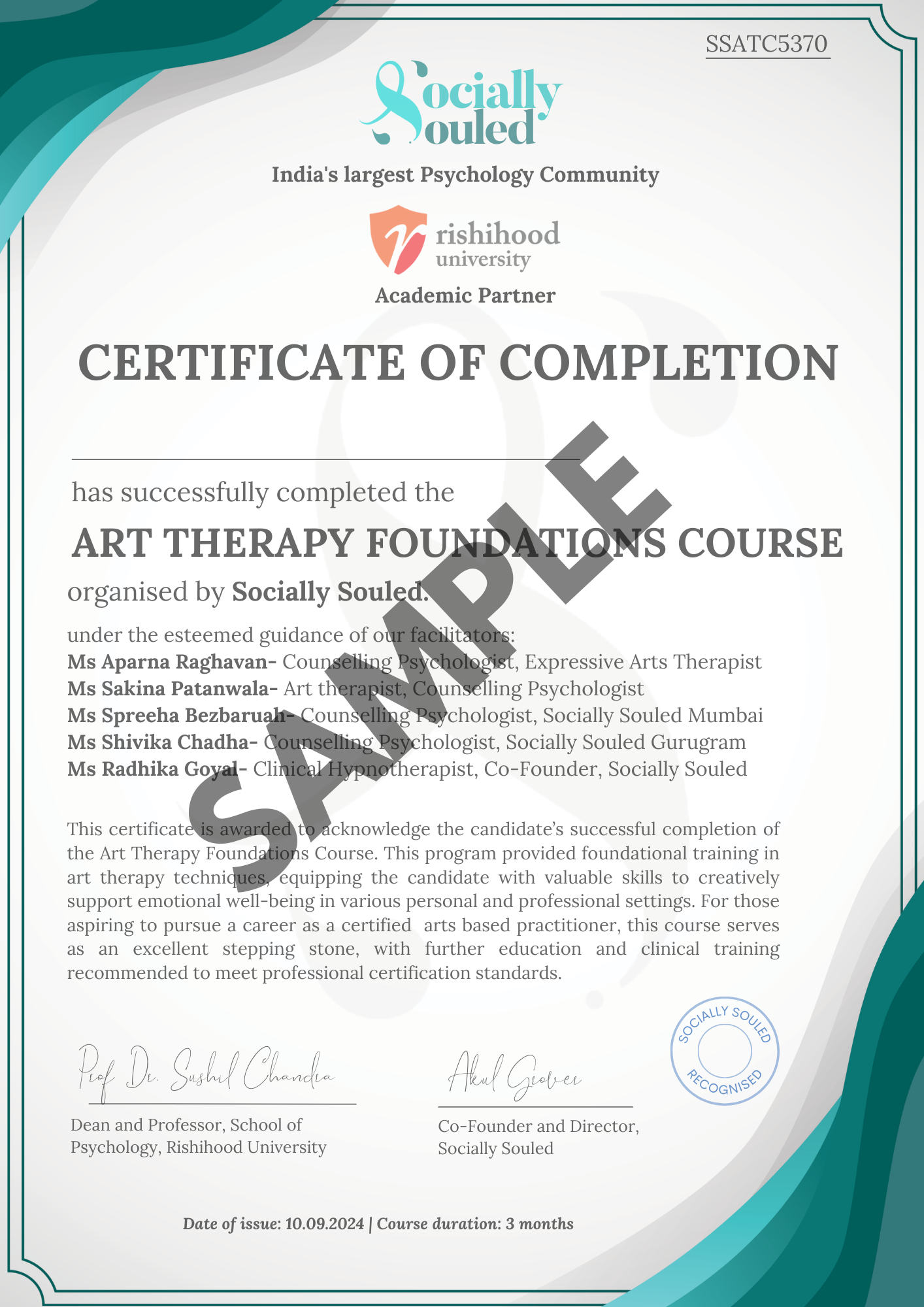 Join our Art Therapy Course, meticulously designed and delivered by experienced art therapists and mental health professionals. As part of Socially Souled, India’s largest Psychology & Mental Health Community, we are dedicated to providing high-quality education and practical skills in art therapy.